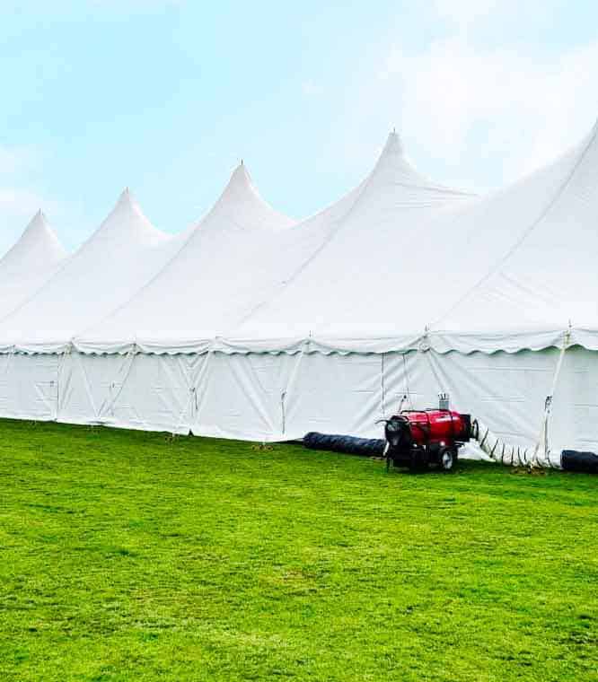 Indirect diesel heaters are an excellent choice for heating marquees, providing efficient and reliable warmth for your events. With a 40-litre fuel tank that is initially filled by Myreton Marquees, these heaters offer generous heating capacity. However, the customer’s responsible for monitoring and refilling the tank as needed to ensure continuous heating. By combining our marquee hire services with our indirect diesel heaters, Myreton Marquees aims to provide comprehensive solutions that create comfortable and memorable experiences for your guests. Contact us today to discuss your event requirements and let us help you plan the perfect heating solution for your marquee event.